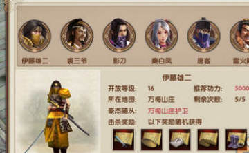 该玩法中有若干江湖豪杰可供选择,豪杰神出鬼没,需要杀死80个豪杰随从后,才能引出豪杰进行击杀。击杀豪杰可获得装备图纸奖励,每位豪杰每天仅可击杀5次。
