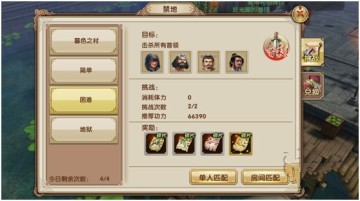 江湖禁地玩法每人每天最多可挑战4次,目前仅开启了“暮色之村”禁地。可选择“简单”“困难”“地狱”三种模式,每种模式每天可挑战2次。在禁地中击杀BOSS和通关均有机会获得不绑定的江湖武学、内功残卷。