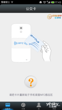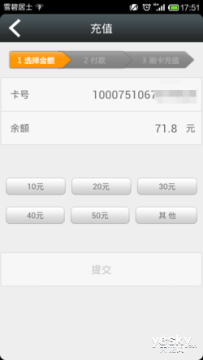 这项功能要求手机为Android系统的NFC手机。充值时先打开充值软件,并将公交卡放在NFC识别区,系统会自动输入手机号和一卡号,听到“嘟嘟”声后,就可以进行充值。目前最低需充值10元,最多能充值50元。