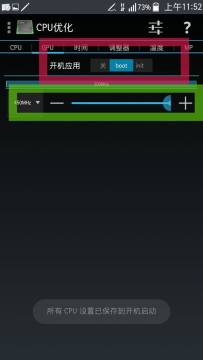 系统必须是4.4.2或以上必须root,因为4.2.2的系统改不了cpu1,2,3的频率,就能改cpu0的,还有我发现4.2.2按住屏幕一段时候屏幕失灵,有些人说4.4.2耗电,跑分低。其实4.4.2更省电,关于跑分只是安兔兔的低,别的都一样。我还是推荐JD V4.0系统