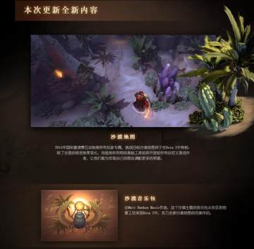 2015年国际邀请赛互动指南所有玩家专属,挑战目标沙漠地图终于在Dota 2中亮相。除了全面的视觉效果变化,创造地形所用的基础工具组将开放给所有自定义游戏作者,让他们能为实现自己的想法调配更多的资源。