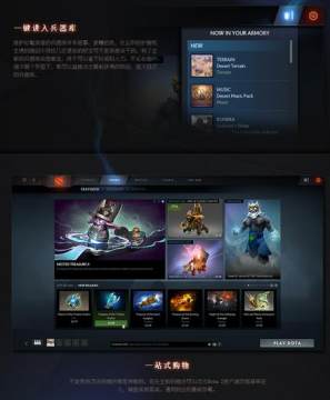 不是所有顶尖的商店都是神秘的。现在全新的商店可以点击Dota 2客户端顶部菜单进入,储备英雄套装、通用物品和最新珍藏。