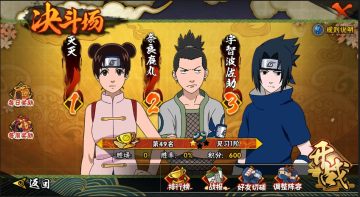 A:玩家每天选择三个忍者,与其他玩家进行自动战斗的系统,战斗胜利获得积分,战斗失败扣除积分,积分越高,战绩越高。战绩越高,每天获得的奖励就越好。
