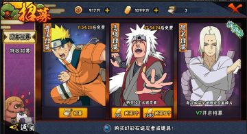 招募系统分为忍者招募和特权招募,其中忍者招募又分为普通招募、高级招募和限定招募三种。