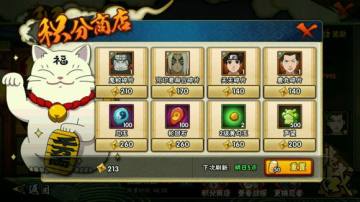 首先是三个商店,积分赛我是选择换c忍,没忍者怎么可能突破生存挑战。组织是换的勾玉和声望,铜币多就换声望,不多就换勾玉,千万别换第一个忍者,据说垃圾的不行。生存就是想换凯出来,已经五个了,但是据说高级招募会出,我感觉35天后,我有可能会再昏过去。