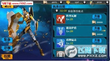技能栏是用技能点升级机体技能的,需要消耗技能点以及金钱。获得更多的金币可以升级更强有力的技能,毁天灭地都有可能哦。