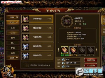每个部位的装备,同样是50级,有些会有多个可以进行选择。比如50级的衣服,就有赤磷甲、精铁铠和飞雪衣三种。点击开,可以看到三件衣服的属性是不同的。基础属性分别是加魔法防御力、物理防御力和生命值。根据自己属性的情况来选择互补的属性,可以提高做任务的效率。比如属性点主要加的物理防御,那么50级装备上就可以选择魔法防御。属性上生命值较低的话,装备上可以选择生命值。弥补弱点后,在做刺探、搬砖等跨国任务时,就可以提高成功几率。