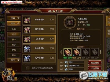 打造装备比较快捷的办法是点击界面上方的提升按钮,在下拉菜单中选择装备提升。然后选择打造装备,就可以看到当前可以打造的各个装备了。选择一个准备要打造的装备,就进入到了打造的界面。