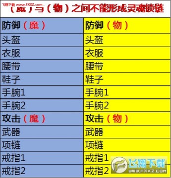 无论是土豪还是小白玩家,无论是5,6,7等材料打造出来的装备,大家都有机会获得一种装备上带有【风】【雨】【雷】【电】【火】,这里只介绍一种比较简单的方法凑灵魂,全身去凑一种灵魂属性,这样容易激活属性,可以跨等级激活,但是不能跨属性,例如魔法攻击的武器不能和物理攻击的戒指凑灵魂,如下表,颜色相同才能成为灵魂套;