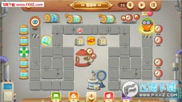 道路是对称的,左右各一个圈,可用炮塔[雪球][风扇][汽油瓶],开局自带一个雪球炮塔,升级后开始游戏。
