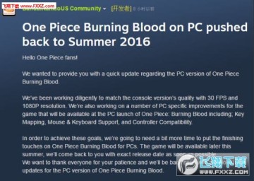 《海贼王:燃烧热血》PC版跳票 游戏将稳定30帧