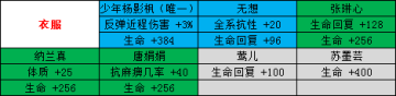 衣服魂石主要推荐魂石少年杨影枫(唯一)、无想、张琳心、纳兰真、唐娟娟(少年杨影枫:反弹近程伤害和生命,无想:全系抗性和生命回复,张琳心:生命回复和生命,纳兰:体质和生命,唐娟娟:抗麻痹和生命),平民选择话推荐魂石苏墨芸(苏墨芸:高生命)。
