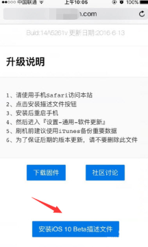 打开Safari浏览器后,我们可以进入到一些知名的iOS 固件下载网站(因为经验的广告协议,这里小编就不贴出具体某网站了,大家可以进入以前自己喜欢的下载网站)进入后,我们找到且点击安装Beta版描述文件。