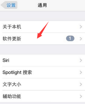打开设置后,我们在它选项下找到并点击”通用“,且在进入通用选项下后,我们再找到”软件更新“这一项,当然点击它。