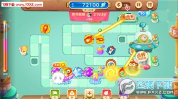 糖 果赛最怕的是什么,没错,就是当你辛辛苦苦的种下炮塔之后却被UFO给吸走了。要想达到三百万分,至少要经历三次UFO。第一次出现还好,只是偶尔吸走你 的炮塔,但是第二次遇到UFO时除了会吸走你的炮塔,还能够暂时定住4到5个炮塔,让你无法攻击。最可怕的是第三次出现的UFO,他能够一下子摧毁掉你5 到6个炮塔,想想都会心疼。