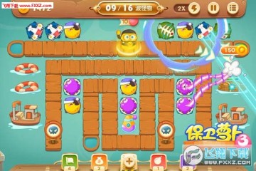 在保卫萝卜3游戏中,码头第21关,这关是双出口关卡,共16波怪,可以使用魔法球、毒气瓶、鱼刺、飞机、月亮等炮塔,下面就给大家分享下保卫萝卜3码头第21关金萝卜攻略。