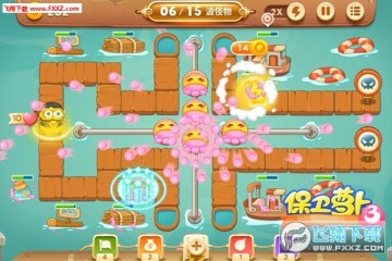 在保卫萝卜3游戏中,码头第37关,这关是双出口关卡,共15波怪,可以使用飞机、月亮、章鱼、船锚等炮塔,下面就给大家分享下保卫萝卜3码头第37关金萝卜攻略。