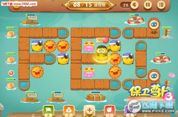 在保卫萝卜3游戏中,码头第38关,这关是双出口关卡,共15波怪,可以使用瓶子炮、飞机、月亮、太阳、船锚等炮塔,下面就给大家分享下保卫萝卜3码头第38关金萝卜攻略。