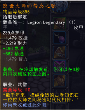 7.0的轮回是 踏风的主要输出技能,但是这个神器技能的效果是必须要杀死目标才会减CD,所以,这个技能用来处理短时间高血量的大怪来用,应该是非常好用的,既能快速击杀大怪,又能减CD,但是如果面对的是纯单体BOSS战,毫无用处,而且轮回现在有一个6S的延迟伤害,处理低血量ADD又非常浪费,所以7.0用轮回之触这个技能时一定要慎重。