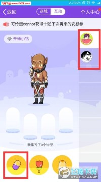 进入厘米秀商城后点击互动界面个人装扮下的小胶囊即可获得贴纸。