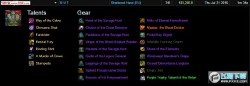 增强萨(萨满前200几乎全是元素,零星的几个增强) 战斗时长1分7秒 秒伤12W