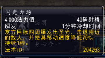 第三层:闪光立场,主要是T血压力大的时候使用,优点是瞬发,CD短,直接弹开小怪,缓解T的压力,给你留出抬血的时间!用的时机合适,兴许还能打断一两个怪的读条~~~~