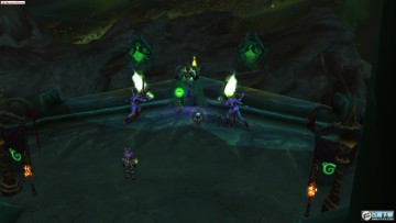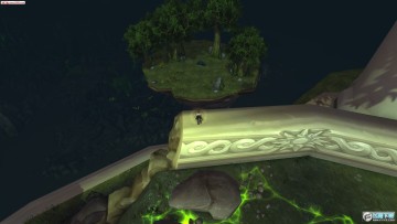 在达拉然平台上的缺口那望下去,就是可以通过传送门去恶魔猎手职业大厅的浮岛。