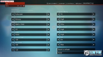 无人深空PC版锁30帧、60帧画面特效设置及游戏评测快速通关攻略 来源: 飞翔小编 2016/8/13 9:01:09 浏览量:1549 从截图中我们可以看到,玩家可以调整游戏的分辨率、垂直同步选项以及画面HUD,另外还有抗锯齿、各向异性过滤、材质细节、阴影细节、生成细节以及反射质量。开发商还为PC版添加了视野范围选项和最大帧数设置。