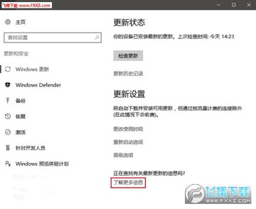 1、先进入设置→更新和安全→Windows更新,在右下方找到“了解更多信息”并点击,如下图——