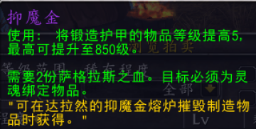 抑魔金为升级制造业成品装等的道具,需要通过抑魔金熔炉获得。