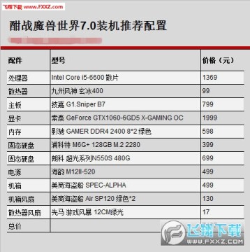 魔兽世界7.0要配什么样的电脑 兽世界7.0装机配置推荐 来源: 飞翔小编 2016/8/21 10:49:31 浏览量:458 这次装机以在《魔兽世界》中代表邪恶力量的绿色和蛋刀为主题,硬件满足玩家酣战在破碎群岛的需求,还带有应景的灯光氛围,故有以下配置。