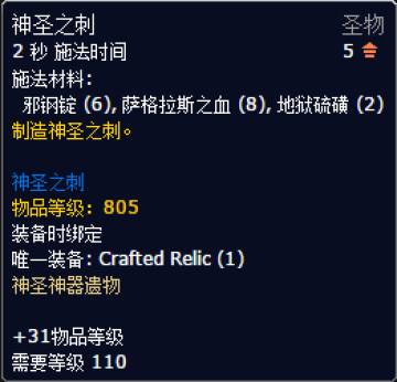 3级神器圣物锻造配方,可提高神器31装等