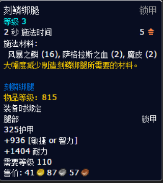 3级制皮配方,715装等锁甲