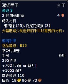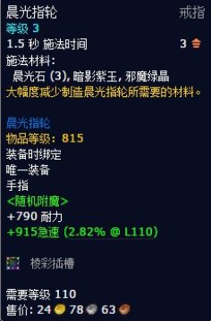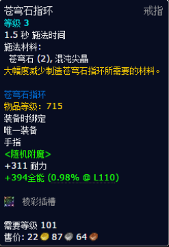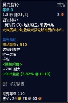 珠宝3级萨满特效项链配方,110级时每1秒恢复53400点生命值。