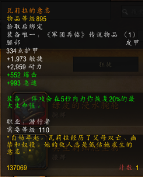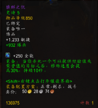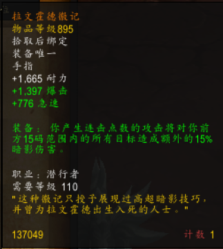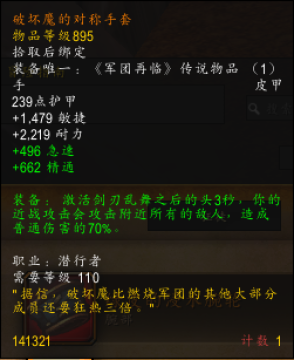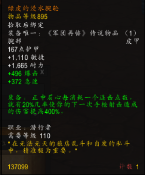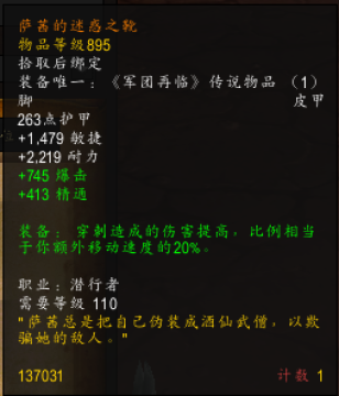 那么我们来看一下simc模板里880散件+穿刺鞋的狂徒贼,是什么属性收益: