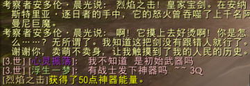 刚刚在阿苏纳升级的时候无意中到了这个NPC边上触发了剧情,也让他摸了下神器然后送了你50能量。