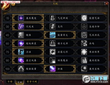 能量咒语:这个天赋,感觉有些鸡肋,要求是你剩余蓝量的百分比,而且最高也就满蓝额外增加5%的触发率,对于概率问题本人基本不信,只看脸的唉。而且奥法的蓝量大部分基本都在50%-80%之间,现在也不需要控蓝输出了。评分:7。