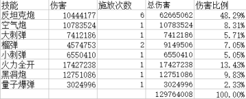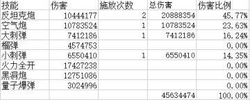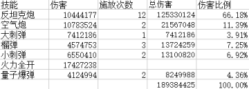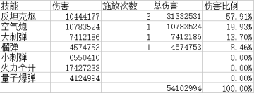 另外,到此可以看出,反坦克炮占伤害比例并不是特别高,最高在冷缩流持续输出中也只占到66.18%,所以没有必要一门心思只提升反坦克炮,提升所有伤害才是上策。