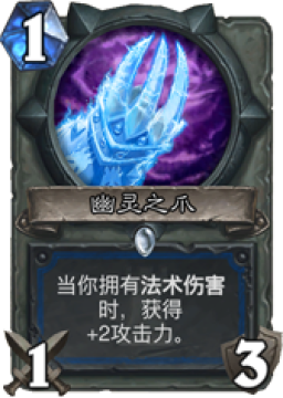 虽然只是新卡,但是幽灵之爪已经吸引了大量的仇恨。讲真,这张卡太强了,强的过分,下限是打脸3点伤害不低,上限却是33的武器,最少值3费的武器。过于完美的让萨满有个强力的解场手段。