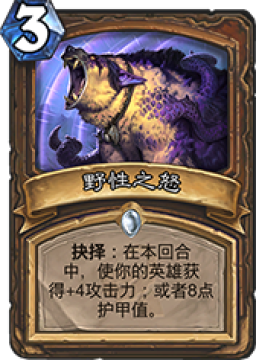 野性之怒强在能解场也能回复,解场能力并不强,回复能力却很强,而且抉择机制太强了。如果选择削弱的话我觉着回复护甲可能被削至6点。