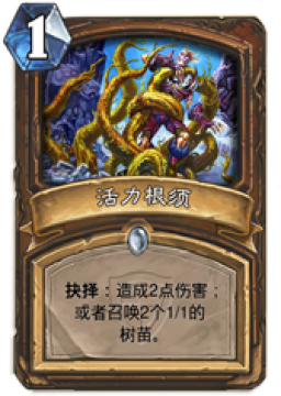 而根须本身就是一张很强适用性很高的卡牌,削了不亏,砍成2费也不会和其他法术重复。如果砍2费的话,效果可以适当提升一点,比如召唤3个11的树苗。