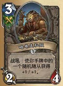 目前来看,相关机制的卡牌身材上来说还都算是过得去。单体BUFF能力的走私贩和驯兽师,本身身材在前期也是够看的,并且之后+1+1的身材成长,能让一个随从变为超模随从,抢占来的节奏足以弥补他们造成的很小的负面影响。