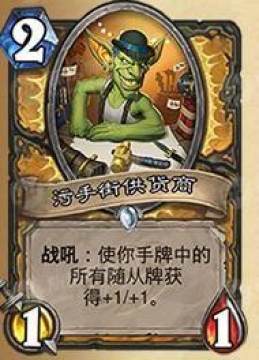 目前来看,暴雪这个版本似乎想要加强骑士的前期能力,打造快攻骑士,而污手街供货商毫无疑问将会是新版本快攻骑中的重要组成部分。