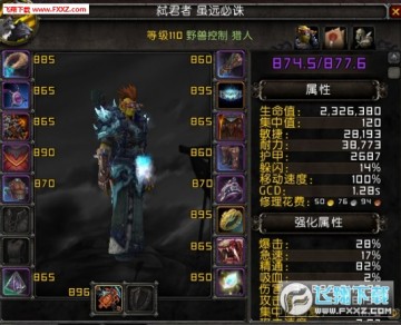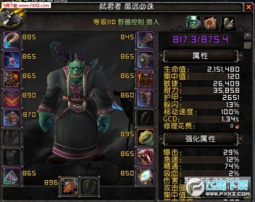 下面是我在职业大厅打的团本木桩的人物属性及数据: