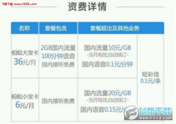 蚂蚁小宝卡超出套餐国内流量1M-200M时,按0.1元/M计费,201M-1024M时不计费,即20元/GB。