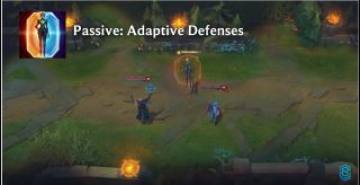 她对英雄的普通攻击会给予敌方英雄的主要伤害类型的护盾(ad/ap)盾,护盾数值基于最大生命值