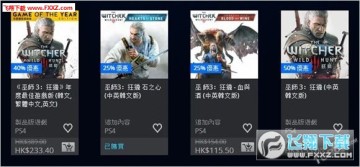 《巫师3》:年度版6折,233.4港币(折合人民币199.5元);单独购买游戏本体和DLC8折。