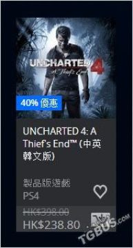 《神秘海域4》:6折,238.8港币(折合人民币213.2元)
