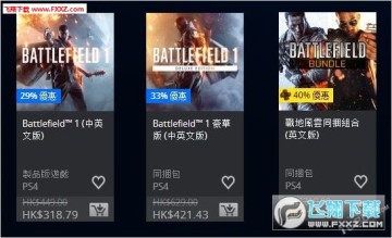 《战地》系列:《战地1》71折,318.8港币(折合人民币284.8元);《战地1》豪华版67折,《战地4》与《战地:硬仗》捆绑套装6折