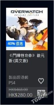 《守望先锋》:6折,280港币(折合人民币250元)